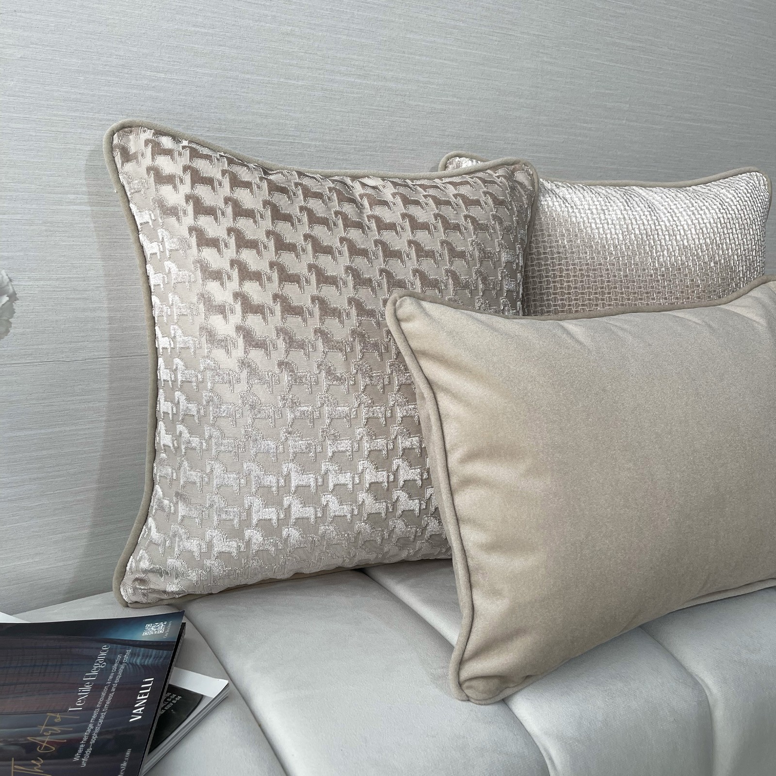 Krem ve bejin doğal uyumunu modern dokularla buluşturan Cheva, yaşam alanlarına zarif ve zamansız bir dokunuş katmak için tasarlandı. Farklı yüzeylerin dengeli birlikteliği; biri dokulu ve sade, biri geometrik hareketli, biri ise düz ve yumuşak formuyla güçlü ama sakin bir kombin oluşturur. Aydınlık krem tonları ile sıcak bej geçişleri, mekâna ferahlık kazandırırken aynı zamanda sofistike bir atmosfer yaratır. Hem açık hem koyu koltuklarla kolayca uyum sağlar; salon ve oturma alanlarında bütünlüklü bir görünüm sunar.