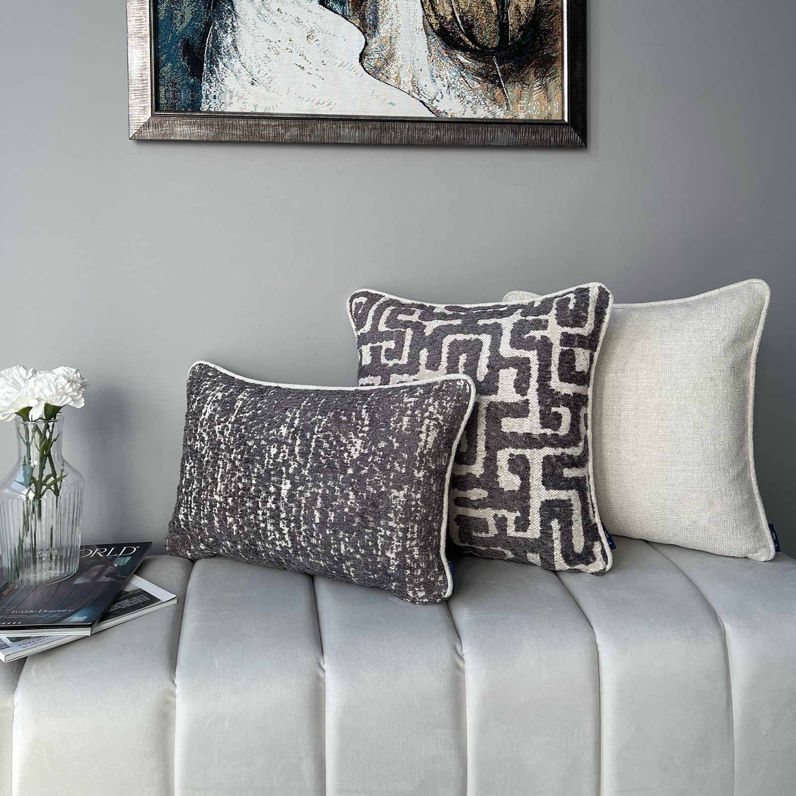 "Stone & Mono & Calm" Kırlent Kılıfı Seti
