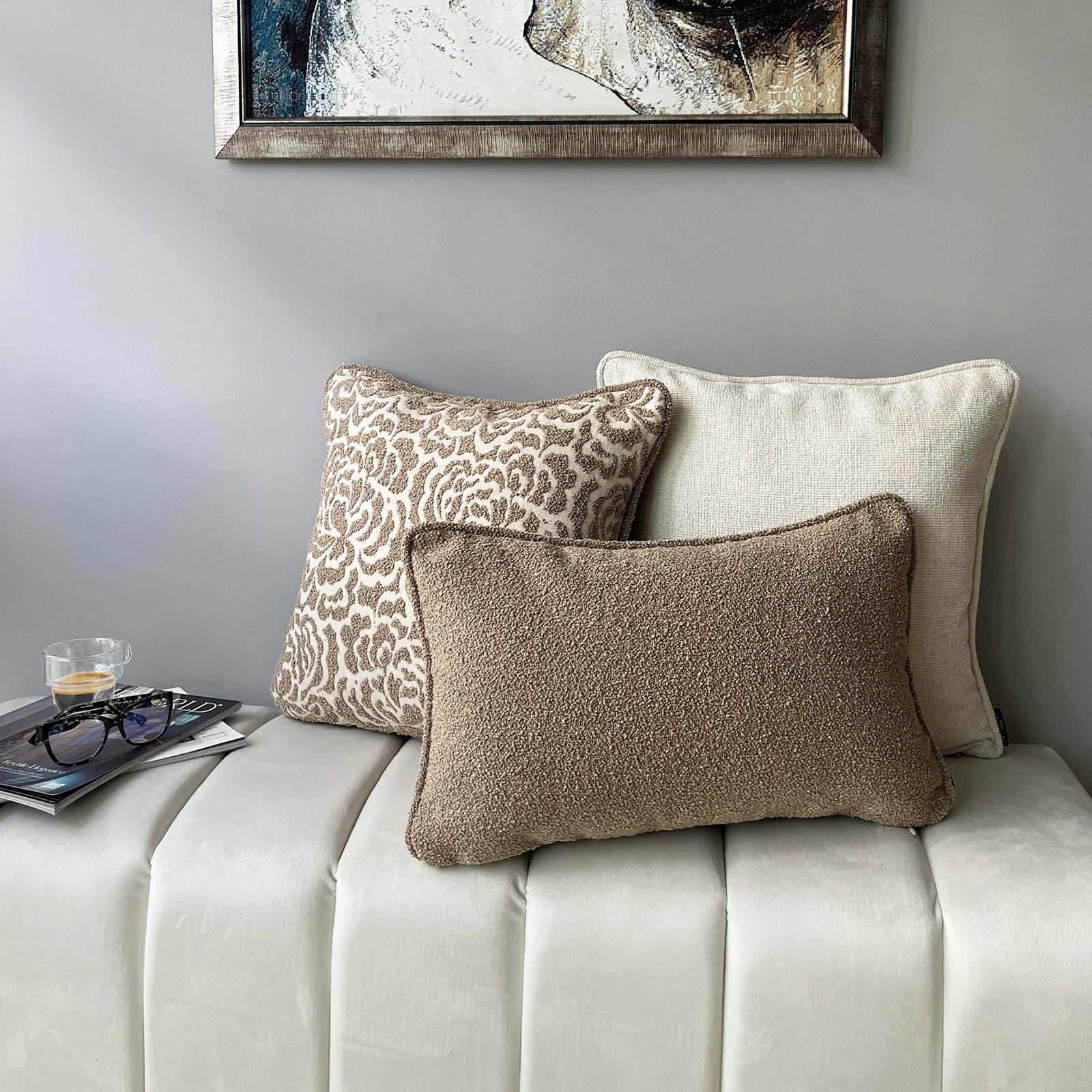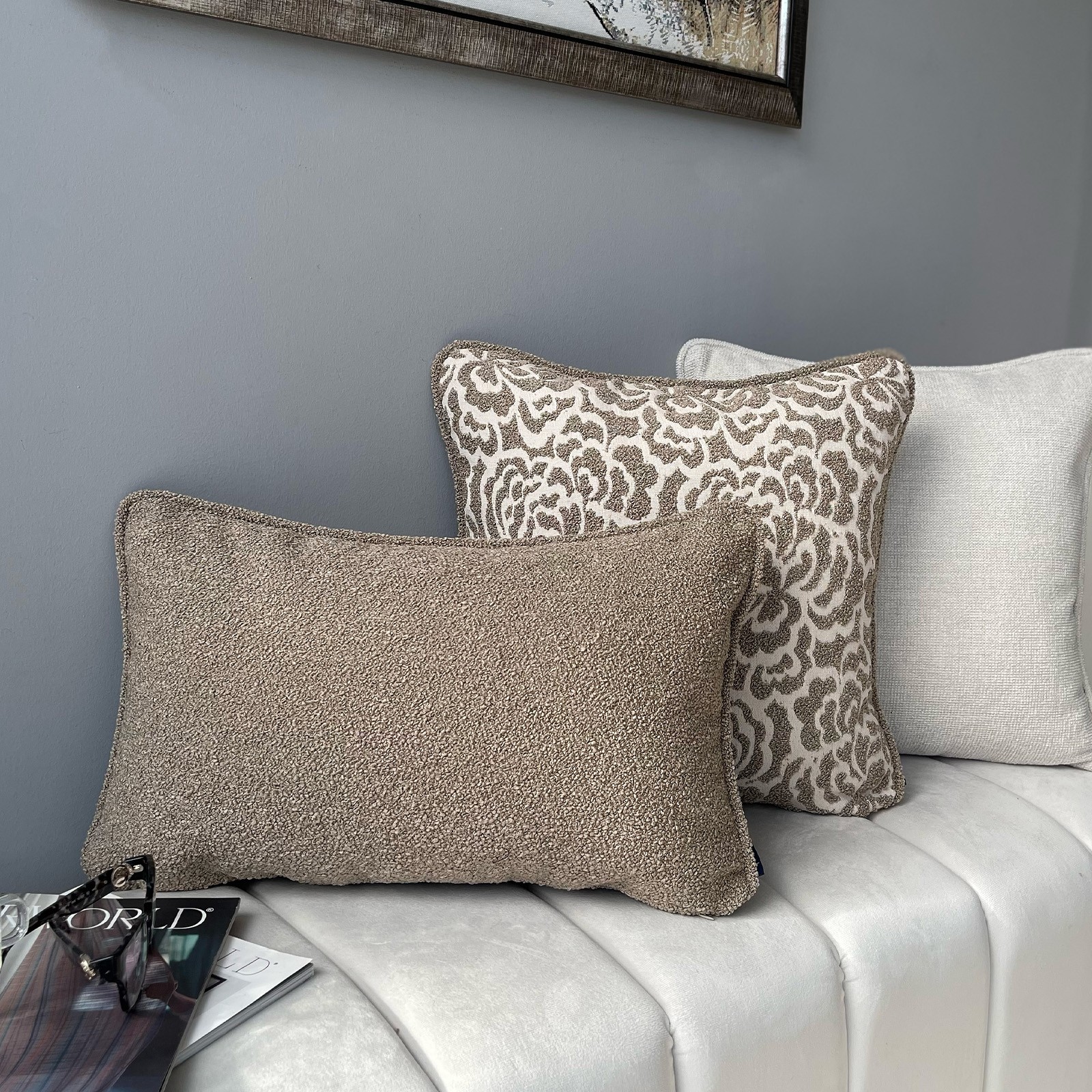 Doğal dokuların sıcaklığı ve zamansız tasarımın zarafeti, Stone Noble Teddy Kırlent Seti ile yaşam alanlarınıza taşınıyor. Yumuşak dokulu teddy kumaşın modern şıklığı, desenli ve düz dokulu yüzeylerle bir araya gelerek sofistike bir dekoratif bütünlük oluşturur. Set içerisinde yer alan kırlentler; farklı dokuların dengeli uyumuyla mekâna derinlik ve hareket kazandırır. Kaliteli dokuma yapısı ve dolgun formu sayesinde kırlentler, hem estetik hem de konfor açısından üstün bir deneyim sunar. Koltuk, berjer, yatak veya oturma alanlarında rahatlıkla kullanılabilir; mekâna sıcak, dengeli ve şık bir görünüm kazandırır. Günlük kullanıma uygun yapısı ile uzun süre formunu korur ve dekorasyonunuza zamansız bir dokunuş ekler.
