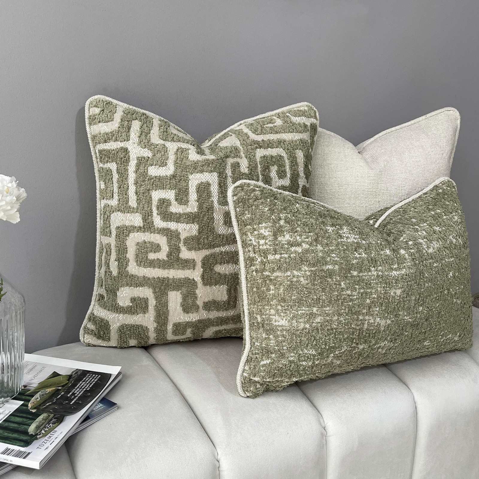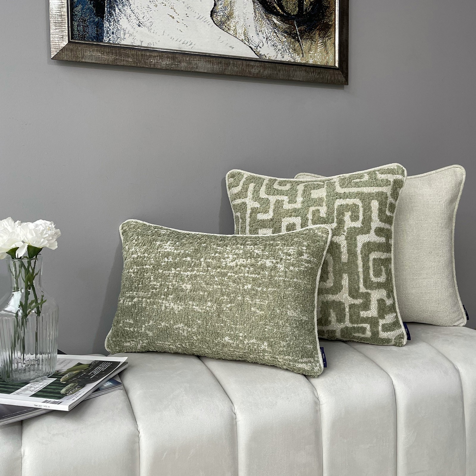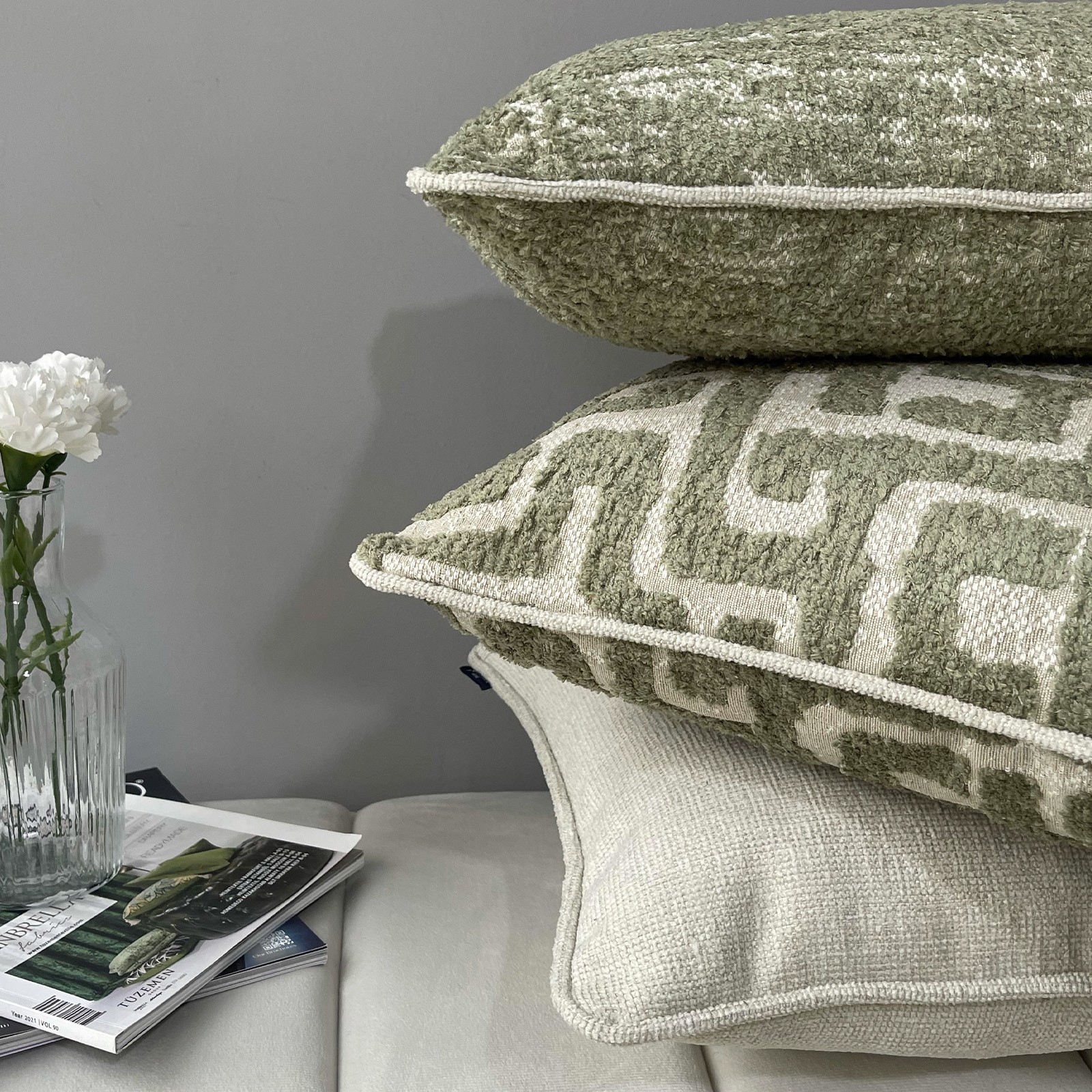 "Stone & Olea & Sage" Kırlent Kılıfı Seti