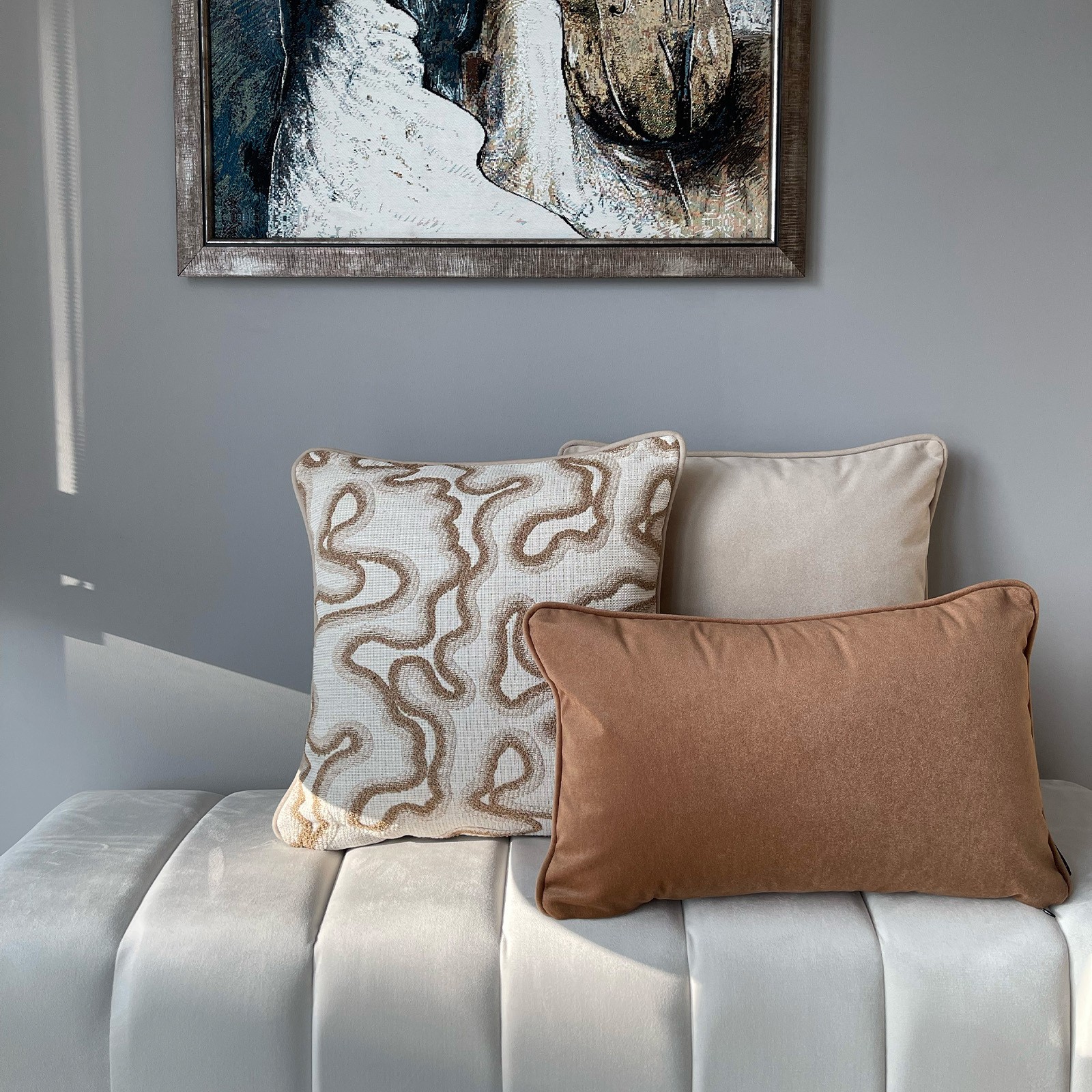 Doğal kiremit tonlarıyla mekâna sıcaklık ve derinlik kazandıran bu dekoratif kırlent, yumuşak dokusu ve sade tasarımıyla konforu estetikle buluşturur. Kadifemsi yüzeyi ışığı dengeli şekilde yansıtarak bulunduğu alana davetkâr bir atmosfer kazandırır. Minimal formu sayesinde modern, rustik ve klasik dekorasyon stilleriyle kolayca uyum sağlar. Salon, yatak odası ve dinlenme alanlarında tek başına şık bir vurgu oluşturur ya da farklı kırlentlerle kombinlenerek zengin bir görünüm sunar. Günlük kullanım için ideal, dekoratif bir tamamlayıcıdır.