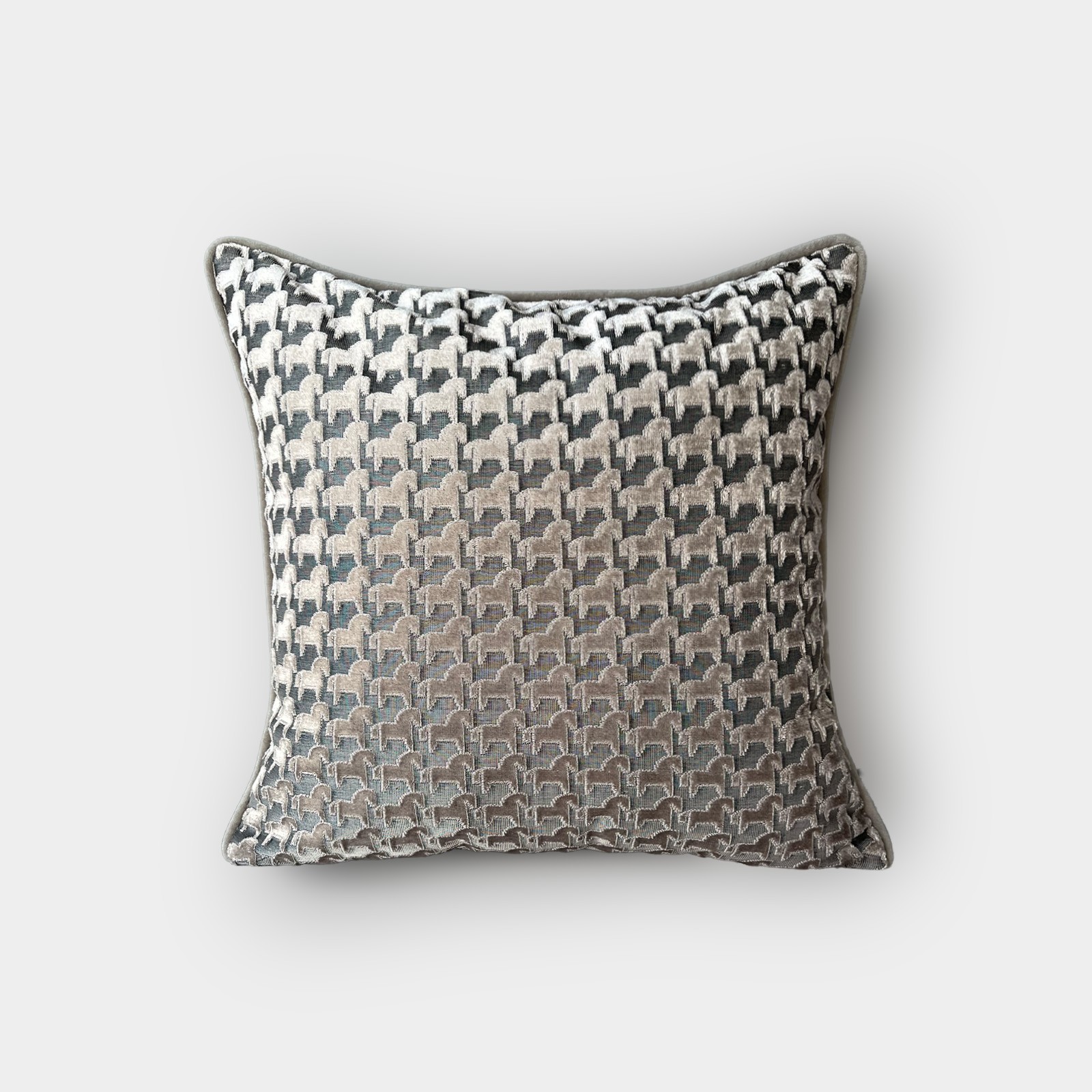 "Troya" At Figürlü Kırlent Kılıfı 45x45 - Açık Gri