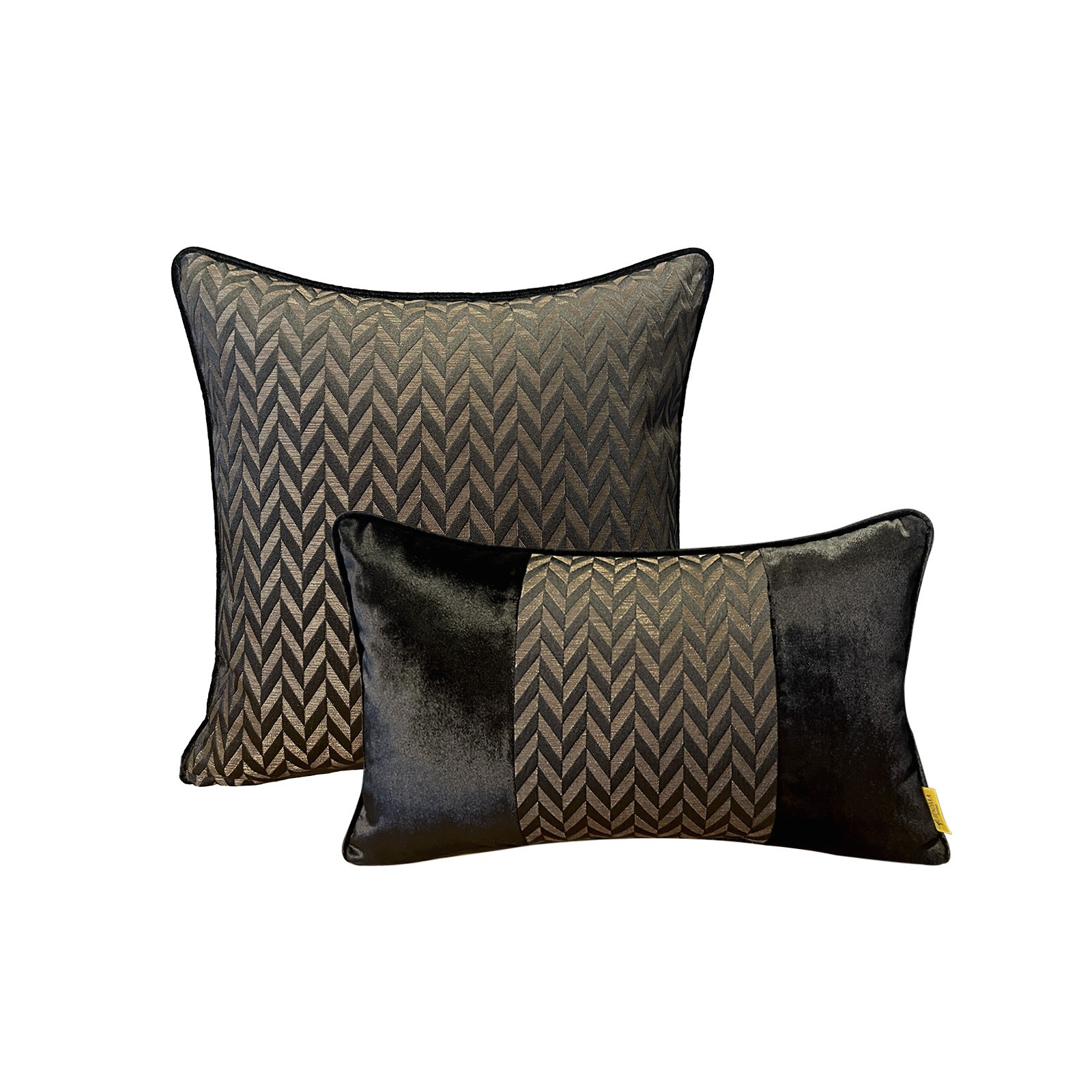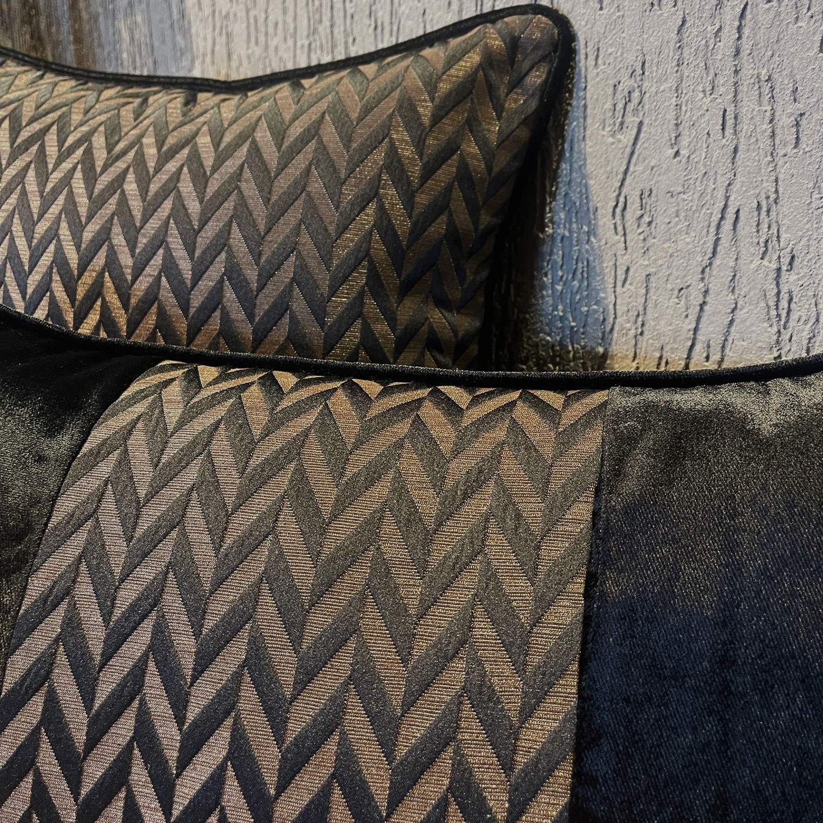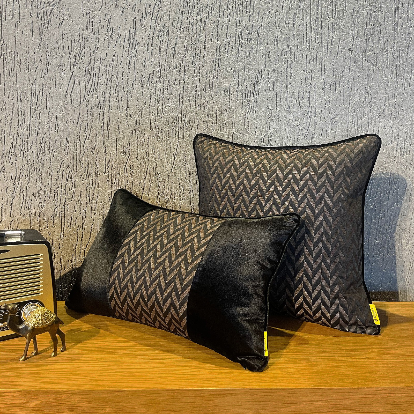 "Valen" Kırlent Kılıfı Seti - Siyah & Bronz Desenli Özel Tasarım